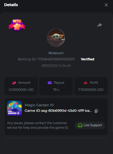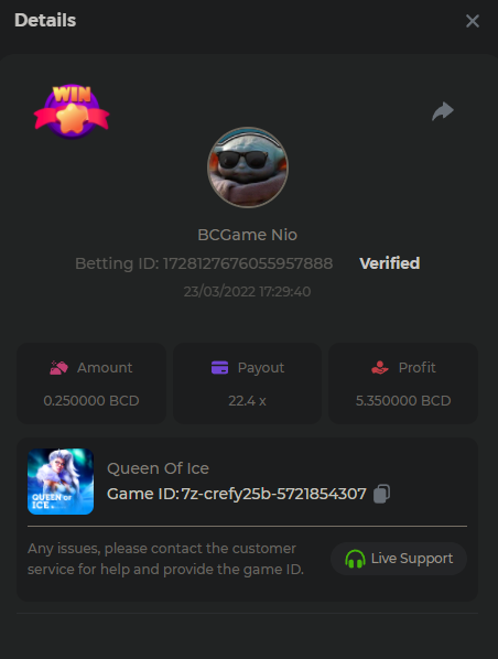$2k Prestige Keno Challenge #22 ⚿ Greetings VIPs! This week we have KENO Challenge, with a total prize pool of $2000. The top 10 players who hit the unique payouts on Keno or Keno Multiplier will receive the major prize, in addition, each eligible entry will also get a share from the pool – Check out below the requirements. What's the Challenge? Complete as many of the following 20 payouts on either KENO or KENO Multiplayer. Must be a exact muliplier. | 5.10x | 11x | 17x | 26x | 30x | 56x | 63x | 81.5x | 100x | 180x | 250x | 270x | 350x | 450x | 500x | 600x | 710x | 800x | 900x - 1000x | Each payout you hit above counts as 1 point (Maximum 1 point for each payout). If there is a tie, the player with the higher average bet amount (in USD) shall be the winner. Minimum VIP There's no minimum VIP level Minimum Payouts Hit at least 3 payouts to qualify Minimum Bet Size $0.10 USD equivalent Eligible Coins All cryptocurrencies are eligible (excepting JB, and BCL) Available Prizes 1st Place....... $500 2nd Place..... $300 3rd Place...... $200 4th Place......$100 5th Place......$50 6th-10th.........$30 The remaining $700 will be split between all other players who reach the minimum target multiplier, min bet and minimum VIP. How to Enter To enter, copy the link of the bet you'd like to submit. Once you've copied it, paste it as a reply to this thread like so: Link: https://bc.game/sd/?sd=10GT450UX7SN4J In the same post, upload a screenshot of your win by clicking the game ID WITH VIEW IN USD mode ENABLED (accessible at the bottom of dropdown menu for your wallet up top. This way, we can ensure that your bet indeed met the minimum requirement at the time of placing it: Link: https://bc.game/sd/?sd=10GT450UX7SN4J Please combine all of your hits together in a SINGLE post. Edit your existing post for additional hits, don't create a new post. Bets must be posted within 24 hours of placing bet in order to keep things fair for everyone. Bets must be made during the specified time window stated above. This thread will lock automatically when the time period is over. One (1) entry per household. Anyone found attempting to win multiple prizes will be disqualified from this challenge as well as all future challenges. Failure to follow instructions will result in your submission being null and void. By entering this challenge, you acknowledge that BC.Game has the final decision on results and placement. Payouts will be made within 72 hours of challenge completion, please be patient, we promise you that we haven't forgotten. We check and double check to make sure the rightful winners receive their prize. Prizes will be paid out in BCD. Good luck to everybody!
