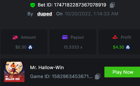 3. https://bc.game/#/sd/10W6REUZ1GA70Z https://bc.game/#/sd/10W6S1JEWS31G3 https://bc.game/#/sd/10WA6WZF0RQMFN https://bc.game/#/sd/10WACS6UJU6CK3 https://bc.game/#/sd/10WB76XTPRKEMR Undead Fortune - $0.10 Halloween Jack - $0.20 Book of Pumpkin - $0.10 Zombie Carnival - $0.20 Zombie Circus - $0.20 Wolf Night - $0.25 Mr. Hallow-Win - $0.30 Tombstone R.I.P. - $0.10 Guises of Dracula - $0.40