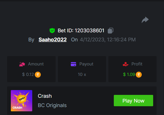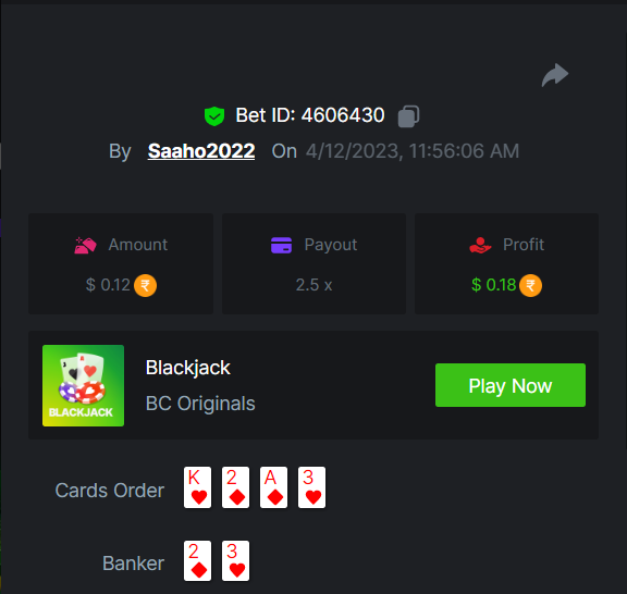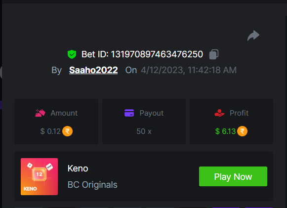 1. EASY link Classic dice 5x https://bc.game/#/sd/117EOWX3F1K1SJ Baccarat 9x https://bc.game/#/sd/117EOZ6USZT7O3 Crash 10x https://bc.game/#/sd/117EP2U6S409AR Egyptian Adventure 10x https://bc.game/#/sd/117EP9B9T7VJ83 Medium Roulette 36x https://bc.game/#/sd/117ENZMSFO2DXV Plinko 76x https://bc.game/#/sd/117EMVH8REZPJN Keno 50x https://bc.game/#/sd/117EMYPFS2740J natural BJ https://bc.game/#/sd/117ENUFTP6WAAB Hard Wheel 49.50x https://bc.game/#/sd/117EPFD06SU9EB Screenshots EASY MEDIUM HARD