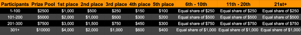 9. $5k Prestige Limbo Challenge #109 DURATION: 4th December - 11th December 05:30 pm UTC This weeks Prestige Challenge is back with your favourite game Limbo! Take part in this amazing yet challenging event to split prizes worth $5,000! Please check below the all new prize pool distribution table to understand more about it. We will be trying this new way for a while and depending on the participations and feedback we will further increase our pools. What's the Challenge? Win the highest multiplier you can on on BC.Game's in-house game, Limbo. If there is a tie, the player with the higher average bet amount (in USD) shall be the winner. If there is a tie in the amount and payout, the one who posted or edited his post first will be considered in the Ranking. How to Enter To enter, copy the link of the bet you'd like to submit. Once you've copied it, paste it as a reply to this thread like so: Link: https://bc.game/#/sd/11NOEOJIJDHGVJ In the same post, upload a screenshot of your win by clicking the game ID WITH VIEW IN USD mode ENABLED (accessible at the bottom of dropdown menu for your wallet up top. This way, we can ensure that your bet indeed met the minimum requirement at the time of placing it: Link: https://bc.game/#/sd/11NOEOJIJDHGVJ Minimum VIP Minimum VIP 4 with phone verified will be eligible! Minimum Payouts Minimum payout to qualify is 20x Minimum Bet Size $0.20 USD equivalent Eligible Coins All cryptocurrencies are eligible (excepting JB) Available Prizes GENERAL TERMS Please combine all of your hits together in a SINGLE post. Edit your existing post for additional hits, don't create a new post. Each eligible entry must have the Bet Slip URL, failure to include it will disqualify participation in the event. Bet Slip image is not mandatory. Bets must be posted within 24 hours of placing bet in order to keep things fair for everyone. Bets must be made during the specified time window stated above. This thread will lock automatically when the time period is over. One (1) entry per household. Anyone found attempting to win multiple prizes will be disqualified from this challenge as well as all future challenges. Failure to follow instructions will result in your submission being null and void. By entering this challenge, you acknowledge that BC.Game has the final decision on results and placement. Payouts will be distributed after the event is finished. Please note that it could take anywhere between 24 hours to 7 days after the completion of the event.