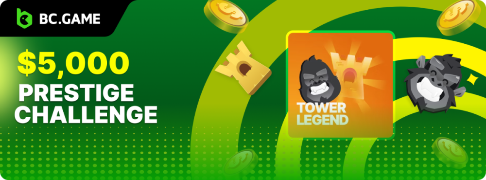 5. $5k Prestige Tower Legend Challenge #112 DURATION: 30th JAN - 6th FEB 14:30 UTC Attention VIPs! It's time to gear up and sprint to the pinnacle of each tower to claim your piece of this week's exhilarating prize pool! Join the rush from January 30 to February 6, ending at 14:30 UTC, and vie for a slice of the $5,000 prize bounty. Don't miss out; familiarize yourself with all the rules to fully engage in this electrifying challenge. Get ready to show your skills, and may luck be in your favor! Let's go, champions! WHAT IS THE CHALLENGE? Get to the top of the tower on any difficulty level at In-House Tower Legend. The player who gets to the top on the most levels will be the winner. If there's a tie, the player with the higher average bet amount (in USD) shall be the winner. If there is a tie in the amount and payout, the one who posted or edited his post first will be considered in the ranking. HOW TO ENTER To enter, copy the link of the bet you'd like to submit. Once you've copied it, paste it as a reply to this thread like so: Link: https://bc.game/#/sd/11RL29Q587Z1GZ In the same post, upload a screenshot of your win by clicking the game ID WITH VIEW IN USD mode ENABLED (accessible at the bottom of dropdown menu for your wallet up top. This way, we can ensure that your bet indeed met the minimum requirement at the time of placing it: LINK: https://bc.game/#/sd/11RL29Q587Z1GZ MINIMUM LEVEL Minimum VIP 8 with phone verified will be eligible! MINIMUM REQUIREMENTS Get to the top of 1 tower on any difficulty level. MINIMUM BET AMOUNT Min bet Easy - $ 1 USD equivalent Min bet Medium - $ 0.50 USD equivalent Min bet Hard - $ 0.20 USD equivalent Min bet Extreme - $ 0.10 USD equivalent Min bet Nightmare - $ 0.05 USD equivalent ELIGIBLE COINS All cryptocurrencies are eligible (excepting JB) AVAILABLE PRIZES GENERAL TERMS Please combine all of your hits into a single post. Edit your existing post for additional hits; don't create a new post. Each eligible entry must have the Bet Slip URL; failure to include it will disqualify participation in the event. The Bet Slip image is not mandatory. Bets must be posted within 24 hours of placing the bet in order to keep things fair for everyone. Bets must be made during the specified time window stated above. This thread will lock automatically when the time period is over. One (1) entry per household. Anyone found attempting to win multiple prizes will be disqualified from this challenge as well as all future challenges. Failure to follow the instructions will result in your submission being null and void. By entering this challenge, you acknowledge that BC.Game has the final say on results and placement. Payouts will be distributed after the event is finished. Please note that it could take anywhere between 3 to 7 days after the completion of the event.