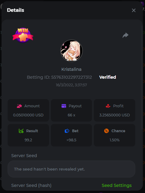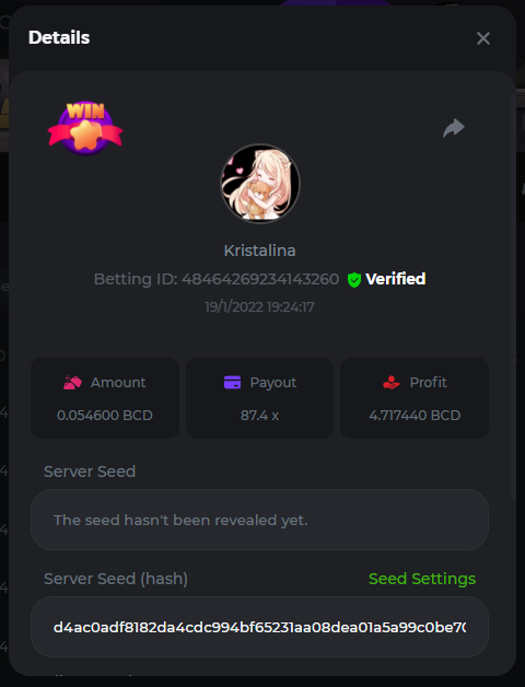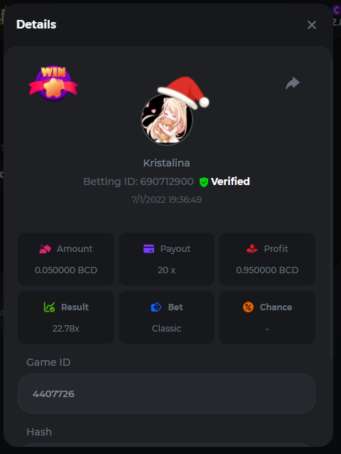 3. Game: Mines Hunt: I BCGAME Description: Set the game with 2 mines, and spell I BCGAME, letter by letter as shown in the example: Bets must be placed in that exact order, all in a row without busting. Only winning bets are valid. Minimum bet size: $0,05 USD or equivalent. All bets must have the same bet amount. Elegible coins: All coins are elegible, except for JBs. Payout : The highest bet amout wins. To enter, post your bets in the following format, with view in USD mode enabled: Betting ID: 50112102156730589