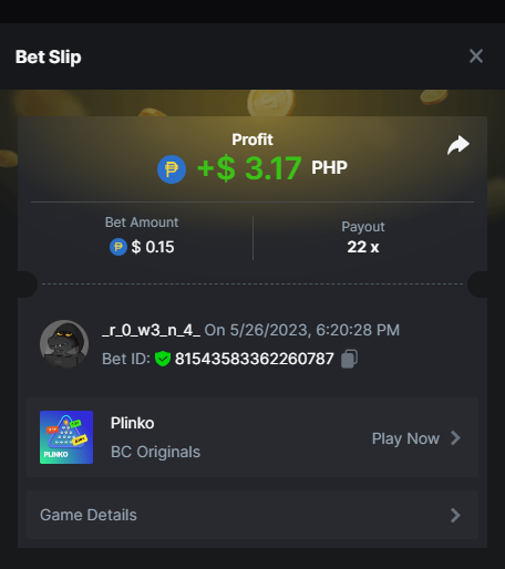 1. @BCGame_Maxim I Will just post here my bet on the new eligible match. I hope you can get the forum opt link fix. Ticket ID: 2289226046861619432