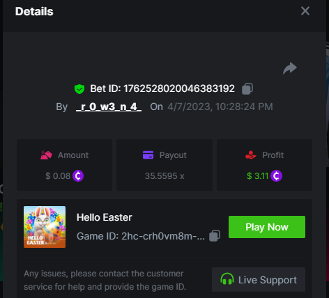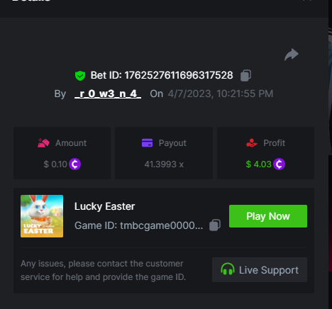 EASY 1. Classic Dice x5 https://bc.game/#/sd/1172TUVX2L3H1V 2.Baccarat Tie https://bc.game/#/sd/11732KXMI1SVF7 3. Crash x10 https://bc.game/#/sd/11734RSKY2XMHF 4. Egyptian x10 https://bc.game/#/sd/1172VH8RHDJ7KJ 5. Oriental beauties x20 https://bc.game/#/sd/1173478JVT0HSJ 6. Cave Plunder x7.5 https://bc.game/#/sd/1172V4QP59YM8J 7. sports 1.5 odds Ticket ID: 2256135545690394958 8. Hello Easter x20 https://bc.game/#/sd/11733P4GUHJUOJ 9. Lucky Easter x30 https://bc.game/#/sd/11733CVSKO9IQB 10. DONE MEDIUM 1.Roulette Single x36 https://bc.game/#/sd/1172ULBVHZUA6R 2. Plinko x76 https://bc.game/#/sd/11732A4K12DES3 3. ring of fortune x99 https://bc.game/#/sd/11749XIMLUF9XV 4. Sport x2 odds Ticket ID: 2256137505235669078 6. Keno x50 7, 30 ,8 https://bc.game/#/sd/11732XQ1RPO6XF 9. Easter eggs x100 https://bc.game/#/sd/117JA802HENGNN 10. Bonus bunnies x100 https://bc.game/#/sd/117HE08BW09JIR HARD 1. Wheel x49.5 https://bc.game/#/sd/1172U64K26OT1V 2. Plinko x420 https://bc.game/#/sd/117C0SS64GF6KZ 3. limbo x500 https://bc.game/#/sd/1174AHPHKU5N2R 6. Mines https://bc.game/#/sd/1177HA4DV5XBTF -