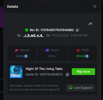 7. Helllloooo bounty wave wave XD x50 https://bc.game/#/sd/10VSHYFHVRCAAB Undead Fortune - $0.10 https://bc.game/#/sd/10VS5TWY02318Z Helloween - $0.10 https://bc.game/#/sd/10VS24QROENJ0Z Lucky Halloween - $0.20 https://bc.game/#/sd/10VS663CQ3Q80J Halloween Jack - $0.20 https://bc.game/#/sd/10VS4C54DA7UVN Book of Pumpkin - $0.10 https://bc.game/#/sd/10VS2KG5WW8RO3 Zombie Carnival - $0.20 https://bc.game/#/sd/10VS77BPFK7ZF7 Zombie Circus - $0.20 https://bc.game/#/sd/10VS6KRD5TQD5F Fat Drac - $0.10 https://bc.game/#/sd/10VS3N9SMODR0Z Night Of The Living Tales - $0.10 https://bc.game/#/sd/10VS1V821IX6VN Wolf Night - $0.25 https://bc.game/#/sd/10VS4XRO9XF76B Mr. Hallow-Win - $0.30 https://bc.game/#/sd/10VS4PMUBD5MHF Voodoo - $0.10 https://bc.game/#/sd/10VS1NUQ6QBW9F Tombstone R.I.P. - $0.10 https://bc.game/#/sd/10VS0WUFNNLVKJ Guises of Dracula - $0.40 https://bc.game/#/sd/10VS7U3R7WQ42B