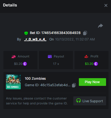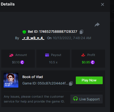 13. 100 Zombies - $0.20 https://bc.game/#/sd/10UXUX355ACBGZ Book of Vlad - $0.10 https://bc.game/#/sd/10UXH0IIU4SHZN Cyber Wolf - $0.10 https://bc.game/#/sd/10UXHER0L512XF Dia De Los Muertos - $0.10 https://bc.game/#/sd/10UXU3KFF380ER Hell Hot 20 - $0.20 https://bc.game/#/sd/10UXVEWG2EZ2MR Magnum Opus - $0.10 https://bc.game/#/sd/10UXW0KLVNPS7N Minotaur - $0.10 https://bc.game/#/sd/10UXHVHA1053PV The Vampires - $0.10 https://bc.game/#/sd/10UXT8CWULG2KZ Voodoo - $0.10 https://bc.game/#/sd/10UXT5SOO3KZ6B