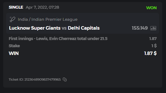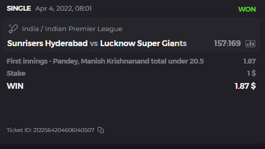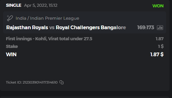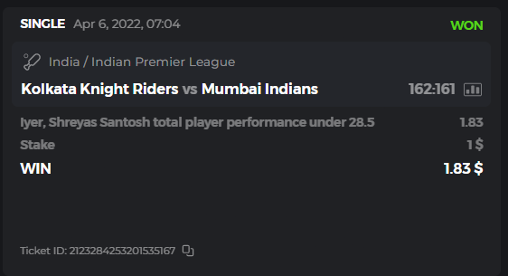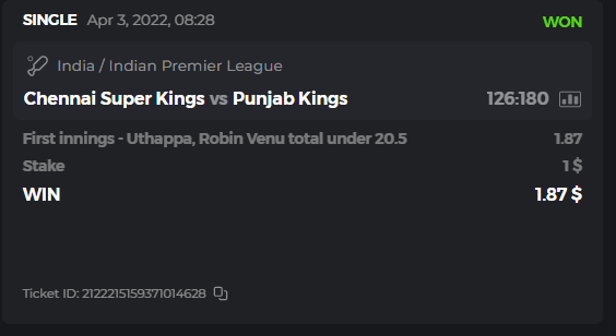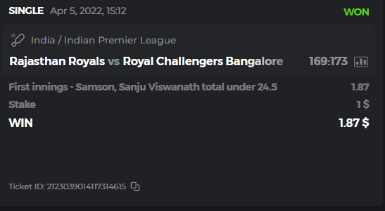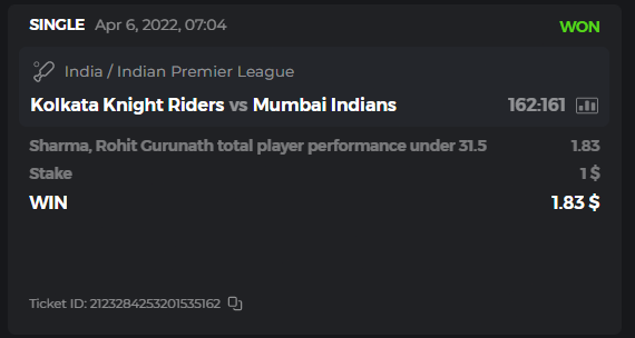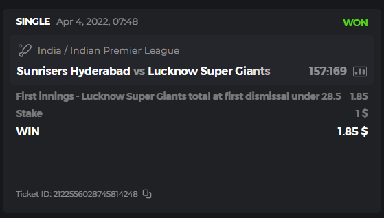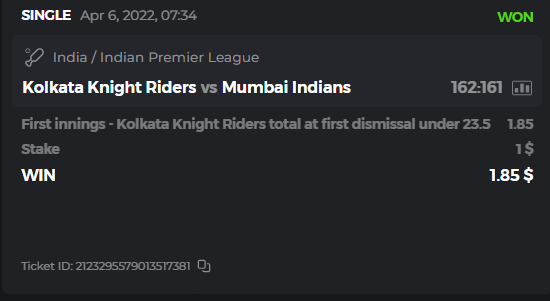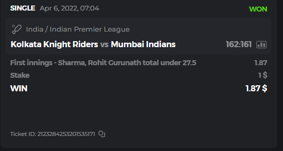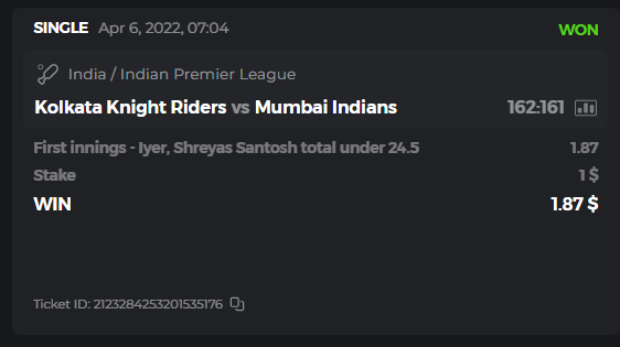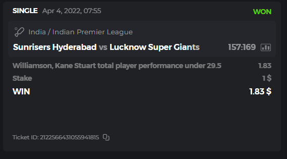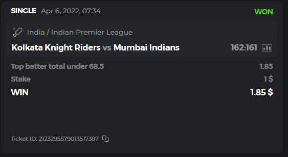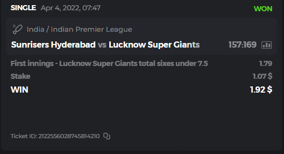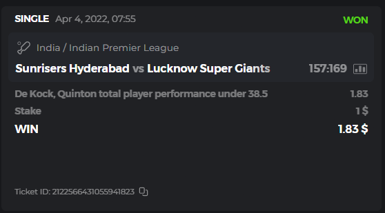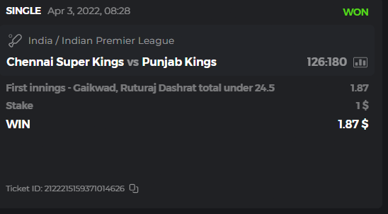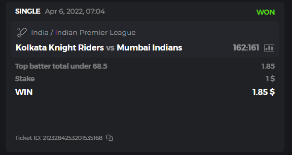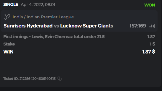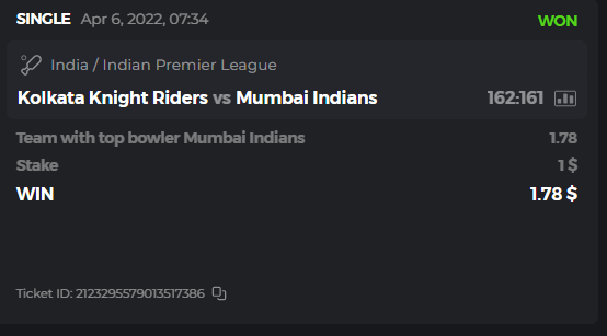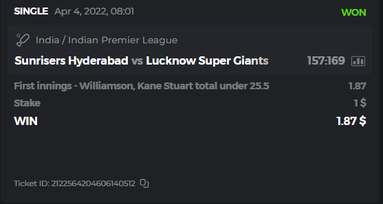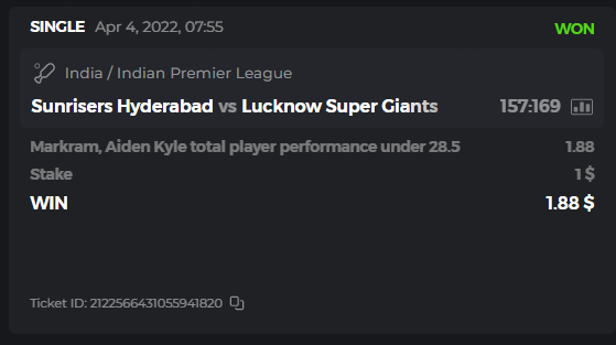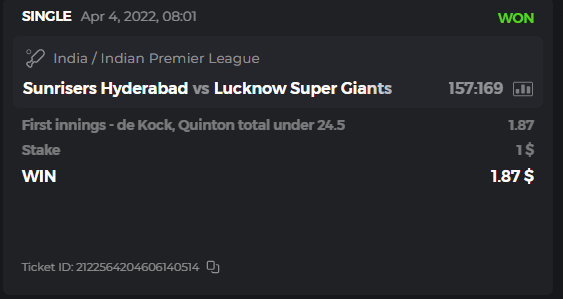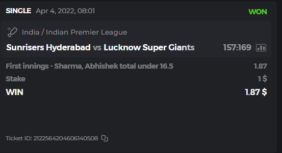 Well played bro but i Think your parlay combo bets are invalid because the Minimum odds pr match is 1.3 so you placed bet in combo of 4 than total odds must be atleast 2.8561 but total odds of your parlay combo bets showing 1.78 it means you have selected market lower then 1.3 in combo bet. please upload full screen shot like this of your combo bets so other competitors can see odds and can see that you have placed bets in IPl only in combo bet.. Thanks -