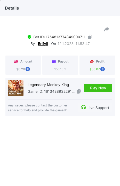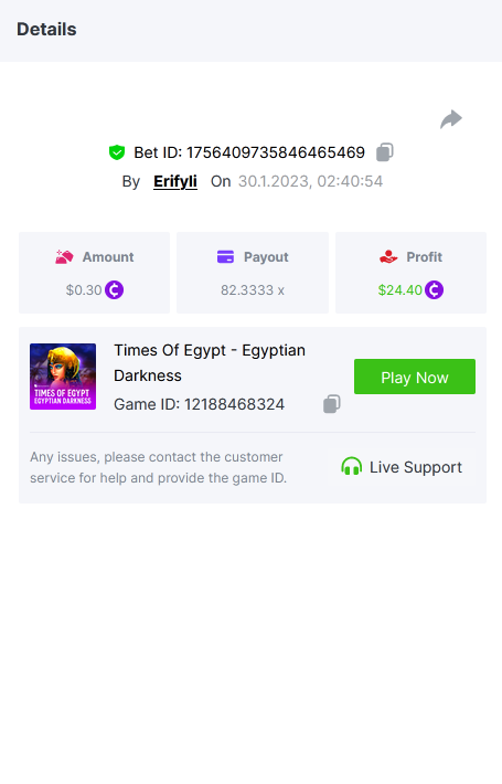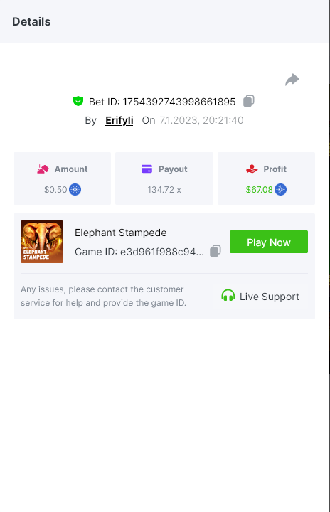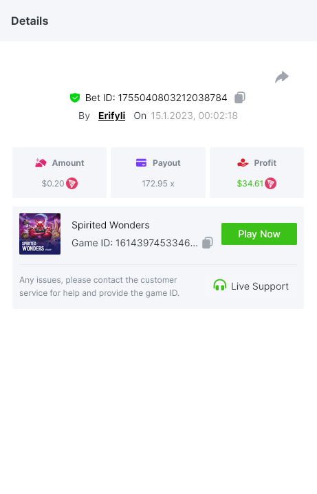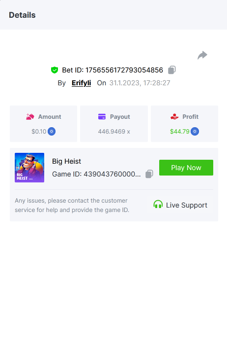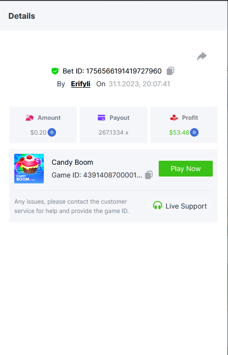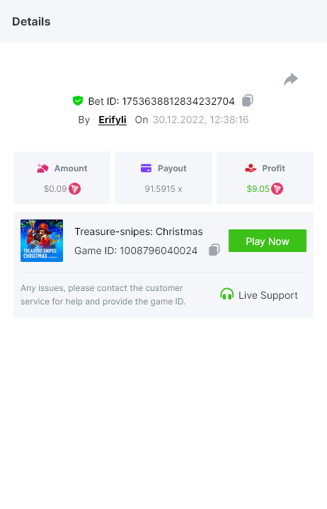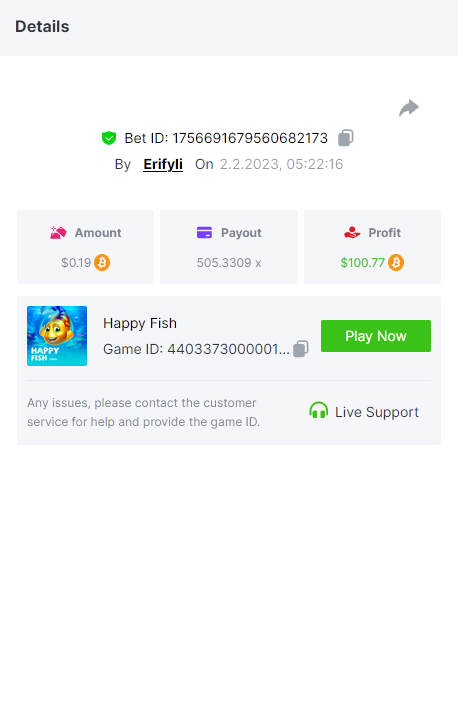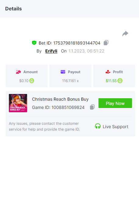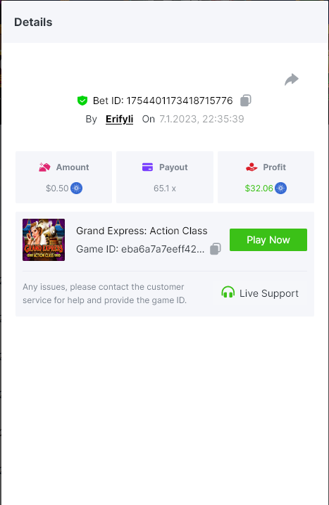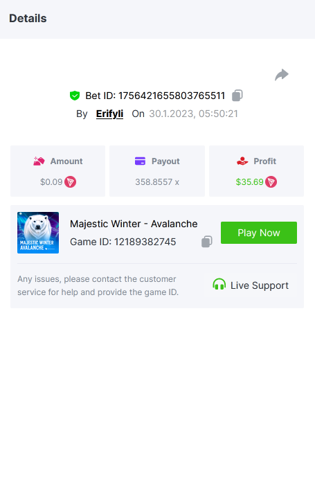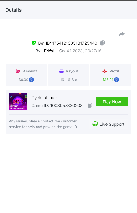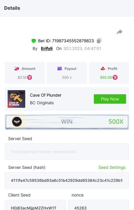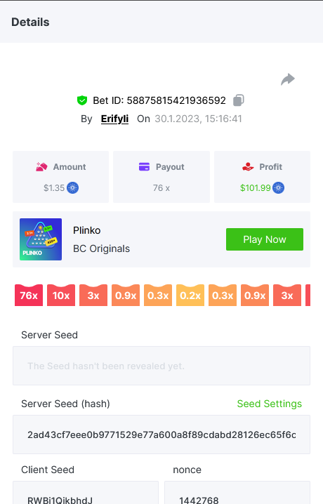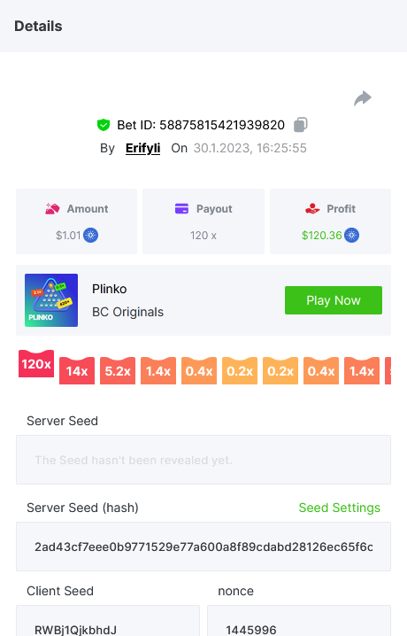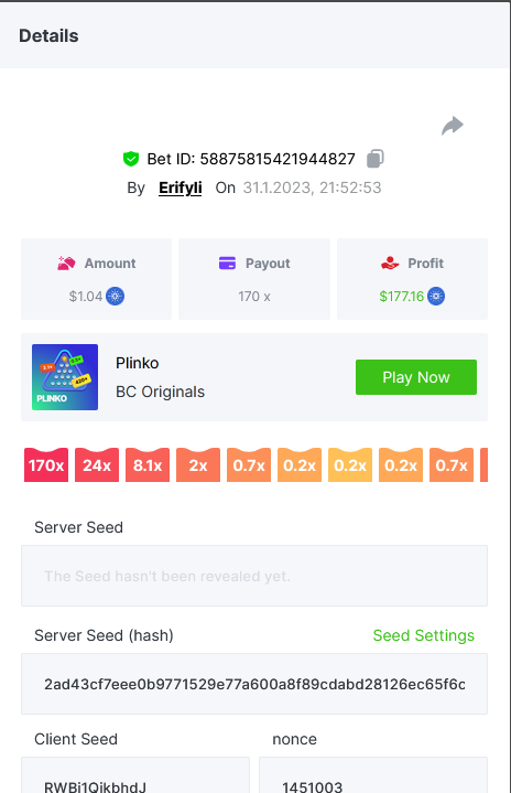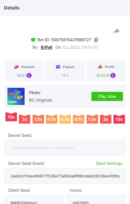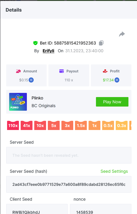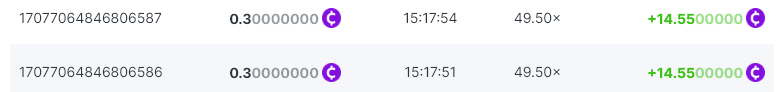6. Bounty ? https://bc.game/#/sd/1123A7FXI98S9F The exact amount paid in the game was 50x but the multi shown is 0.05 higher than in reality. Not sure if this counts as bounty. https://bc.game/#/sd/1123L1X3SF7YTV https://bc.game/#/sd/111XF58ISYZR4J https://bc.game/#/sd/111X8MPZ776SYB https://bc.game/#/sd/111XAGX5V8YMMR https://bc.game/#/sd/1121WOEHI0AT5F https://bc.game/#/sd/111XKLL6U67THV