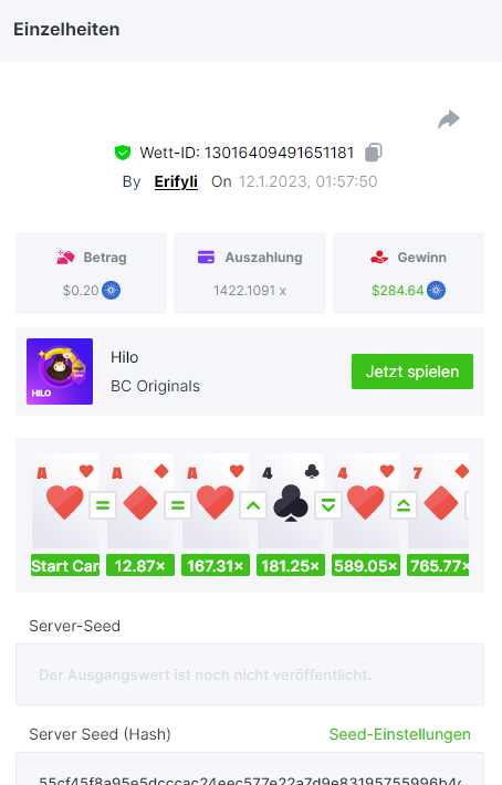8. Also Bounty (3 Aces) https://bc.game/#/sd/11173KUMVQT8GJ