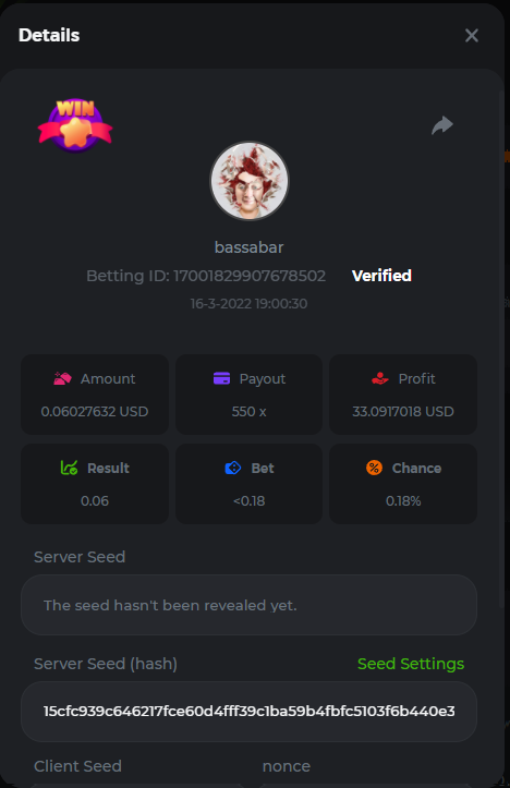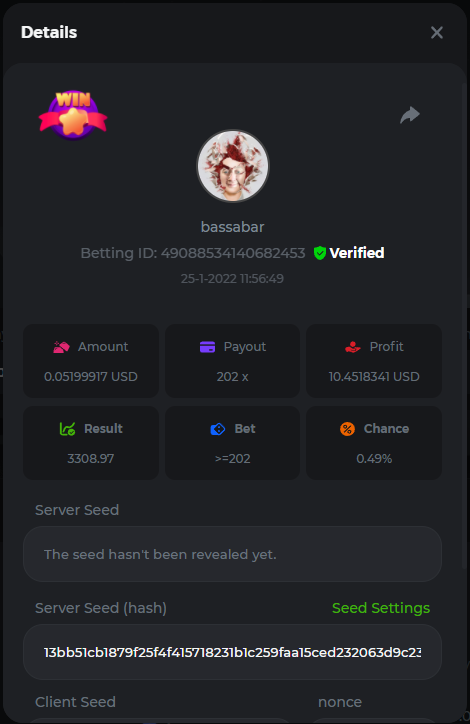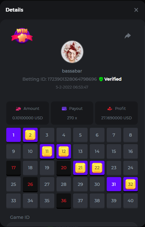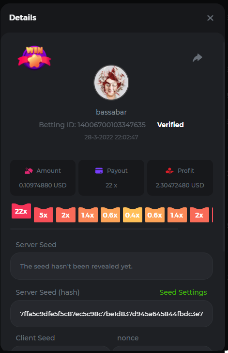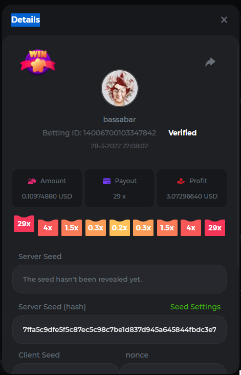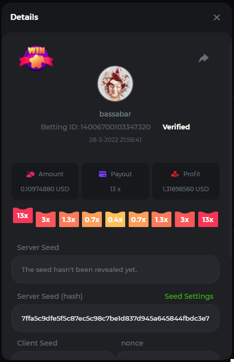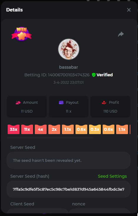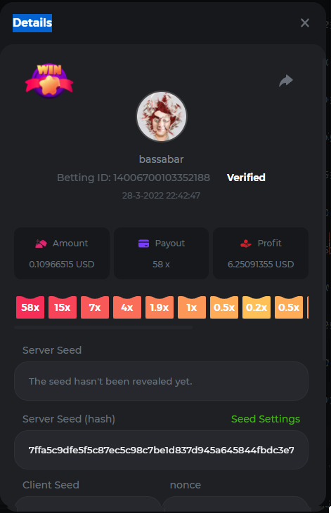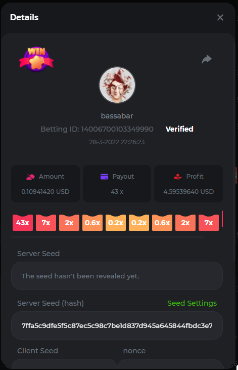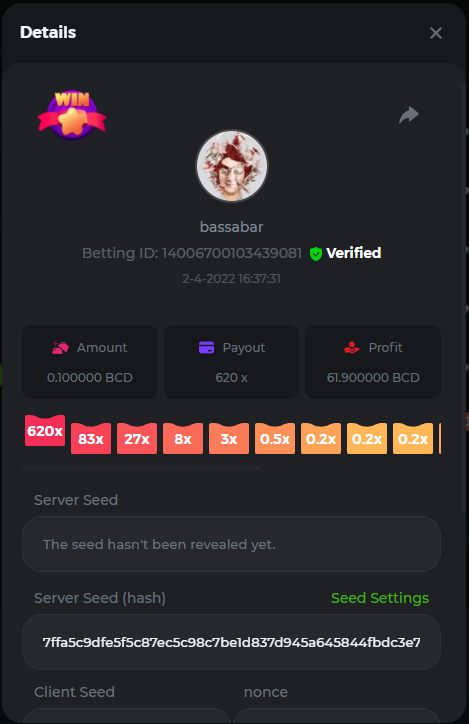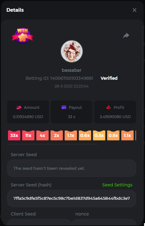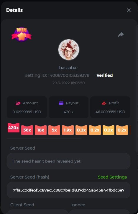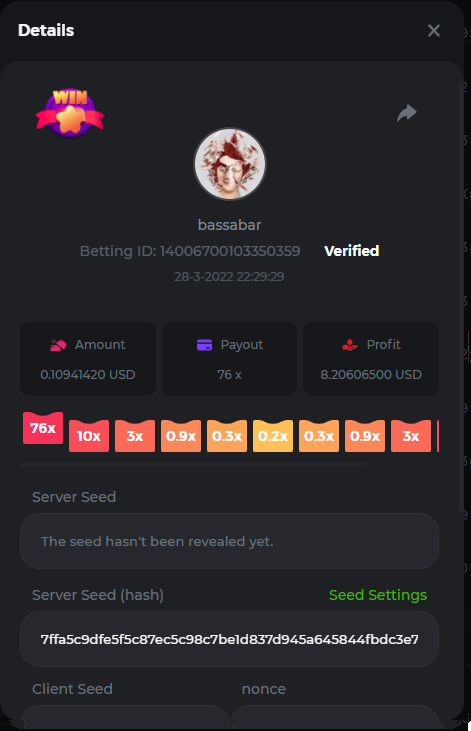 18. Multiplier: 3965.8928x Betting ID: 37852715010786023 Multiplier: 569.25x (for the bounty) Betting ID: 37852715010784878