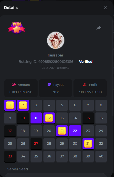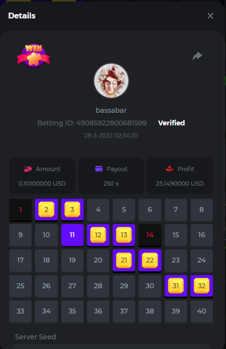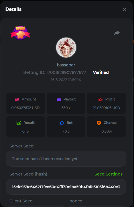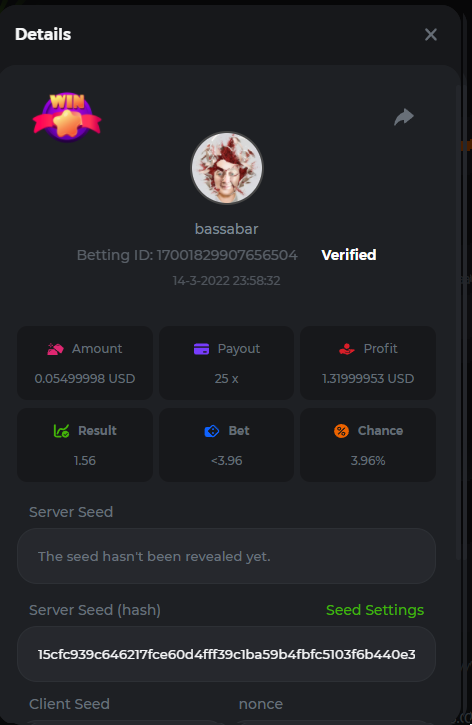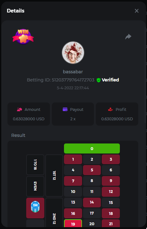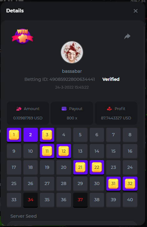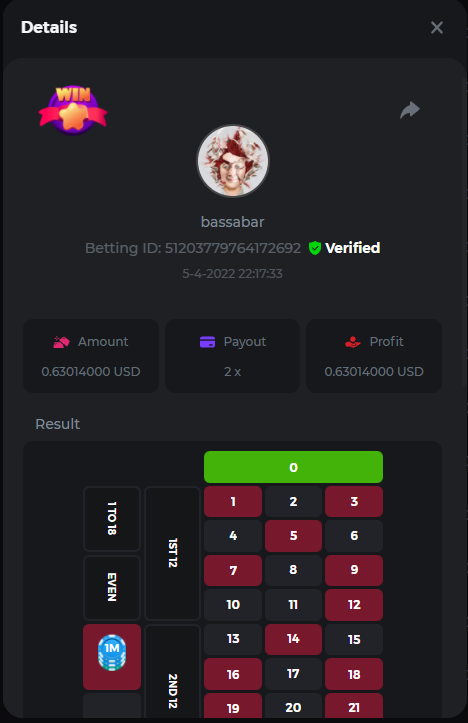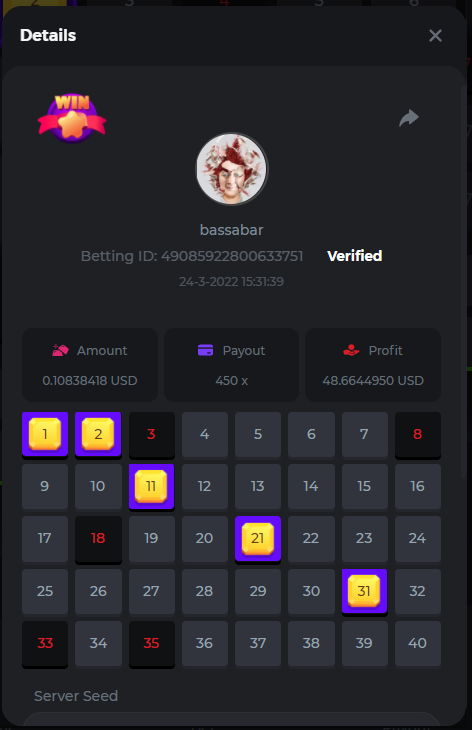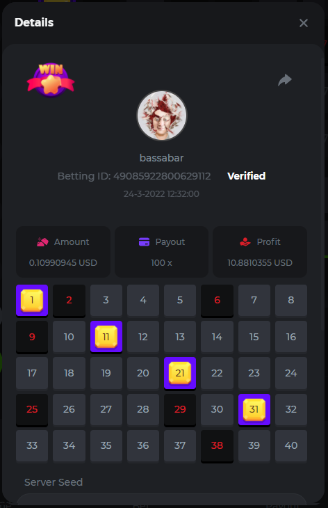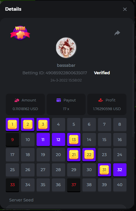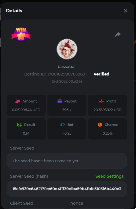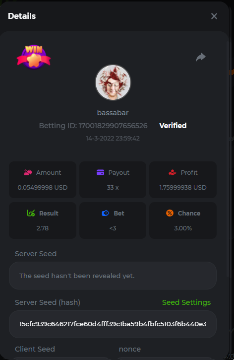 18. Multiplier: 3965.8928x Betting ID: 37852715010786023 Multiplier: 569.25x (for the bounty) Betting ID: 37852715010784878