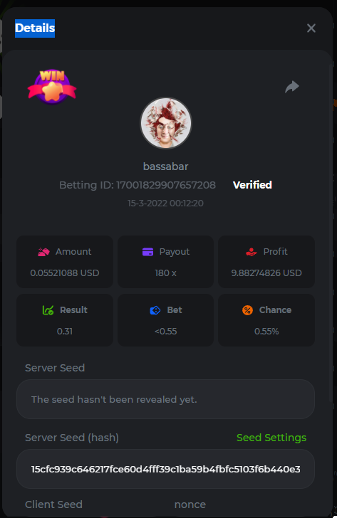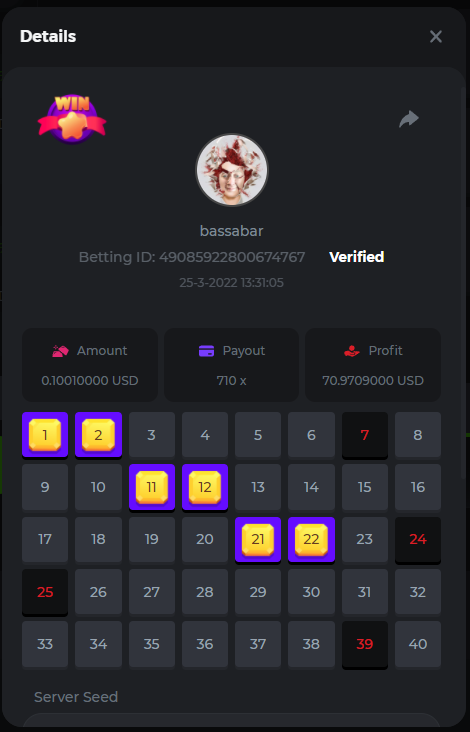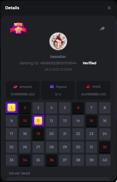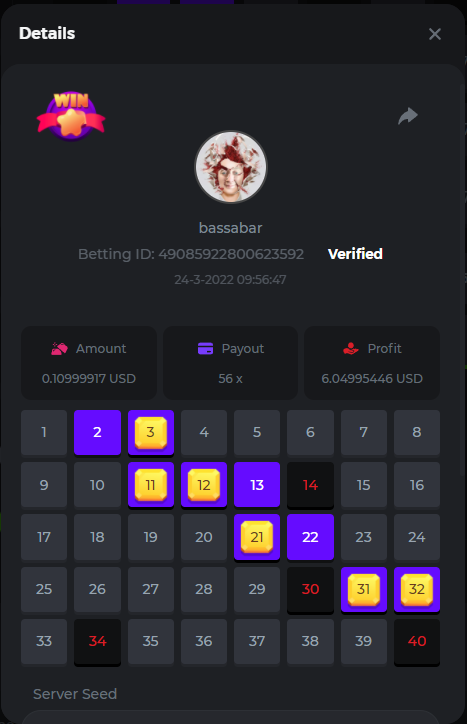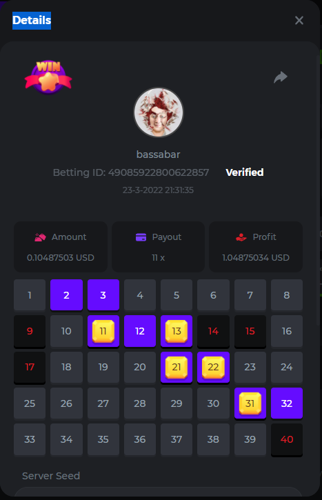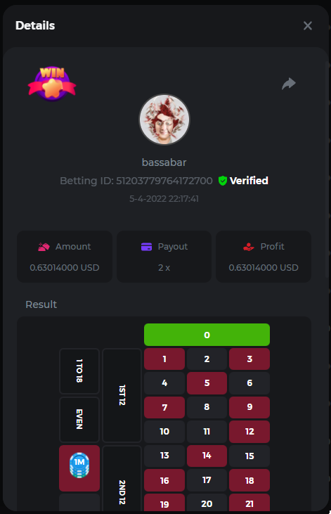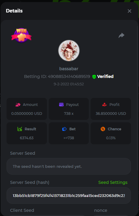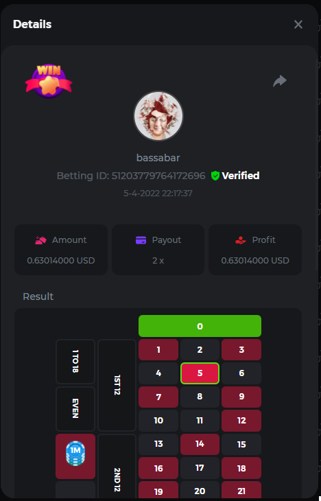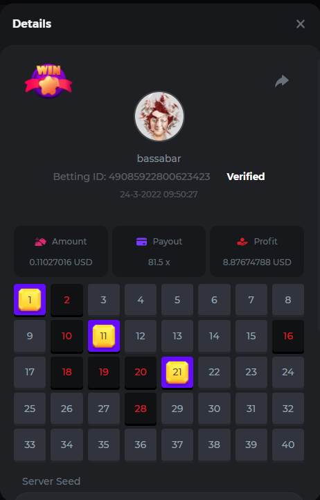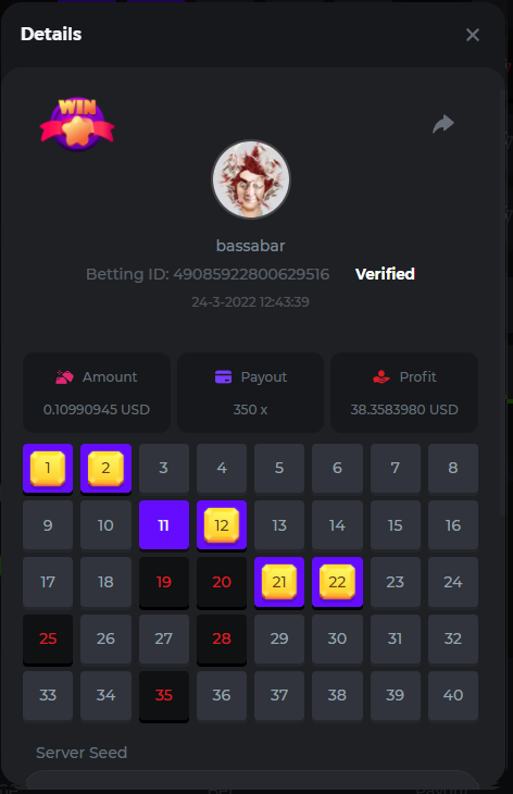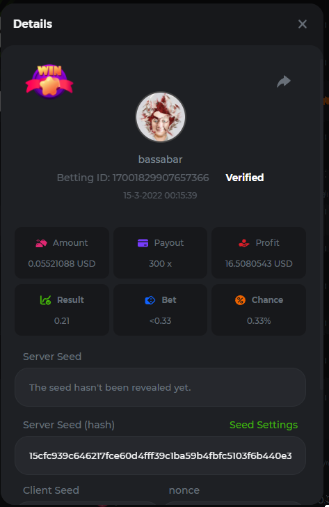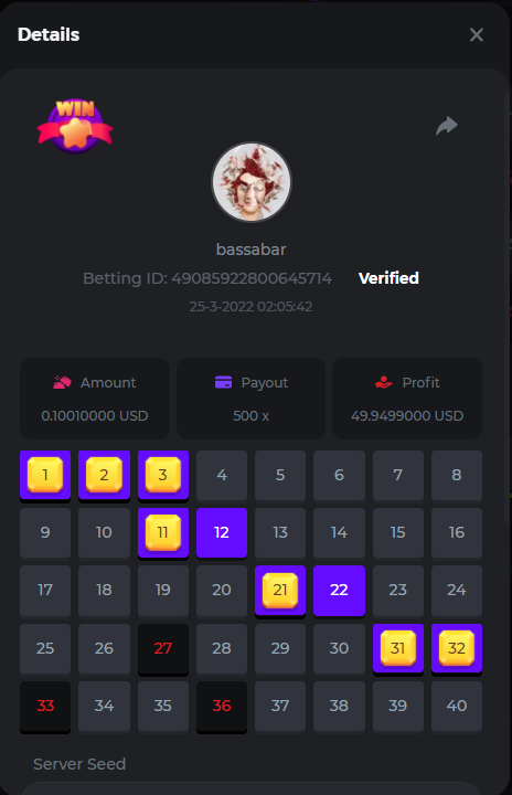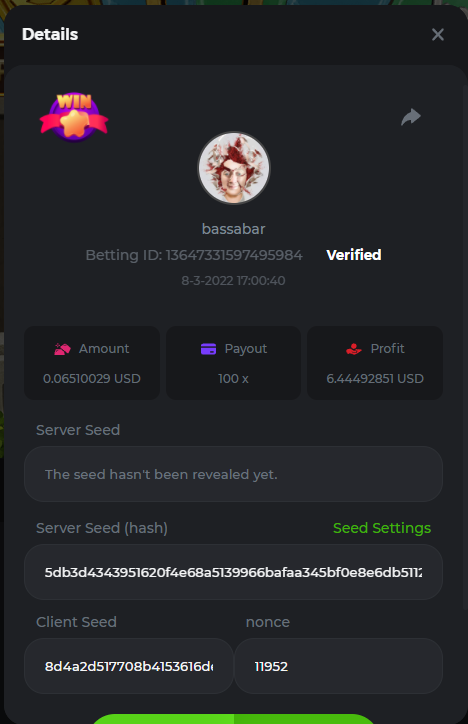 18. Multiplier: 3965.8928x Betting ID: 37852715010786023 Multiplier: 569.25x (for the bounty) Betting ID: 37852715010784878