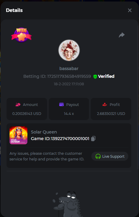 12. Solar Queen Multiplier: 14.4x Betting ID: 1725117936584919559