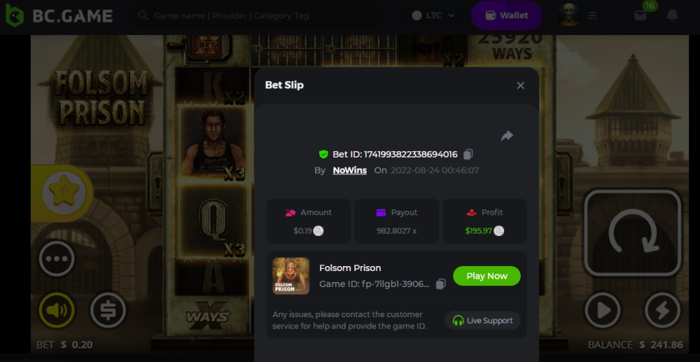 Mental: 631.8x https://bc.game/sd/?sd=10R6V7T3ZXR7DF Fire in the hole: 201.4x https://bc.game/sd/?sd=10RHS08USA9JWZ Tombstone R.I.P: 459.27x https://bc.game/sd/?sd=10RA41TLCRUYOJ San Quentin: 421.4x https://bc.game/sd/?sd=10R6N6LBS3LTZN Folsom Prison: 982.8x https://bc.game/sd/?sd=10RHGW9EOO1XCJ Karen Maneater: 391.3x https://bc.game/sd/?sd=10RHWNPP8HYUC3 Bounty (maybe) https://bc.game/sd/?sd=10R9KAEE20Z7RN -