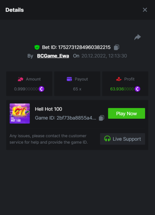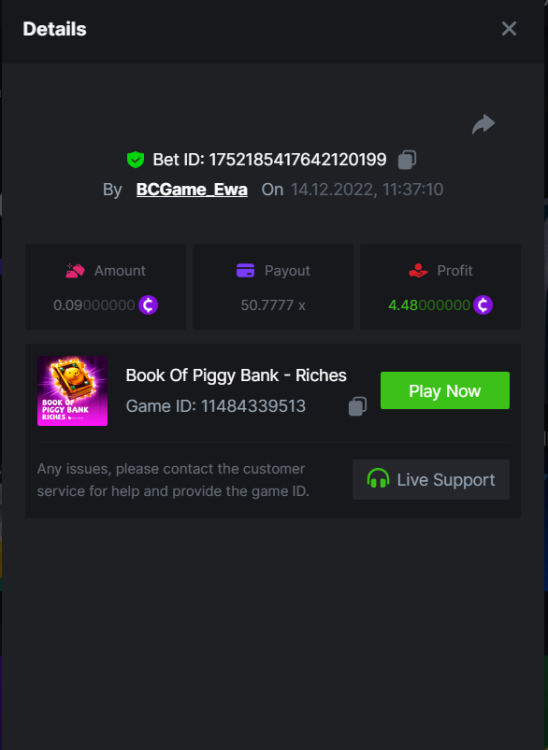 10. $1,500 Booongo Multiplier Battle Hey VIPs! The weekend is over, but that doesn't mean the fun has to end! We are glad to announce a new event with the Booongo provider. It runs from December 19 until December 22, and each participating in the event must achieve the highest payout possible on the Booongo slots listed below. Plus, all eligible participants will be rewarded equally. Good luck, and show us big wins! – (Check all the conditions for participation below). Duration: 19/12/2022 2:00pm – 22/12/2022 2:00pm UTC Prize Pool: $1,500 Eligible Games: Play below games to participate in this event: Aztec Fire Sun of Egypt 3 Sticky Piggy Big Heist Green chilli The highest multiplier reached in each game will be added together and counted as total points. Bonus buys are allowed. If the player submits multiple winning entries for the same game, the entry with the highest multiplier will be valid. How to Enter Access the game to select your Bet ID, click on the Share icon (↷) and then Copy link. Return to the topic, paste the link in the field "Reply to this topic..." E.g.:https://bc.game/#/sd/10ZHYY5RK14E8J In the same post, upload a screenshot of your win by clicking the game ID WITH VIEW IN USD mode ENABLED (accessible at the bottom of dropdown menu for your wallet up top, and Submit Reply. Done! This way, we can ensure that your bet indeed met the minimum requirement at the time of placing https://bc.game/#/sd/10ZHYY5RK14E8J Minimum VIP Tier Must be VIP04 or higher in order to enter this event. Minimum Payout Minimum payout to qualify is 10x (in any game) for a valid entry. Minimum Bet Size Aztec Fire - $0.2 Sun of Egypt 3 - $0.25 Sticky Piggy - $0.2 Big Heist - $0.1 Green Chilli - $0.2 Eligible Coins All cryptocurrencies are eligible (excepting JB, and BCL). Free Play Mode is not valid for this event. Prize Pool & Reward Breakdown The winners will win a share of the prize pool based on the detailed ranking below. All other participants who complete all minimum requirements will receive a 35% share of the prize pool. Additional Rules: Please combine all of your hits together in a SINGLE post. Edit your existing post for additional hits, don't create a new post. Each eligible entry must have the Bet Slip URL, failure to include it will disqualify participation in the event. Bet Slip image is not mandatory. Bets must be posted within 24 hours of placing bet in order to keep things fair for everyone. Bets must be made during the specified time window stated above. This thread will lock automatically when the time period is over. One (1) entry per household. Anyone found attempting to win multiple prizes will be disqualified from this challenge as well as all future challenges. Failure to follow instructions will result in your submission being null and void. By entering this challenge, you acknowledge that BC.Game has the final decision on results and placement. Payouts will be distributed after the event is finished. Please note that it could take up to 48 hours after the completion of the event.