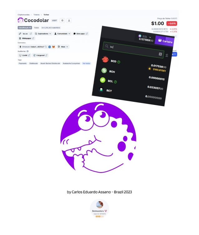 1. Because we love the COCO it's super important to incorporate the crocodile into what everyone wants to earn, dollars. If COCO's time is the time to earn BCD, why can't BCD have the face of our COCO? He is much more original than dogs. Original text: Como amamos o COCO, é super importante incorporar o crocodilo naquilo que todos querem ganhar, dólares. Se a hora do COCO é a hora de ganhar o BCD, por que o BCD não pode ter a cara do nosso COCO? Ele é muito mais original do que cachorros. ---