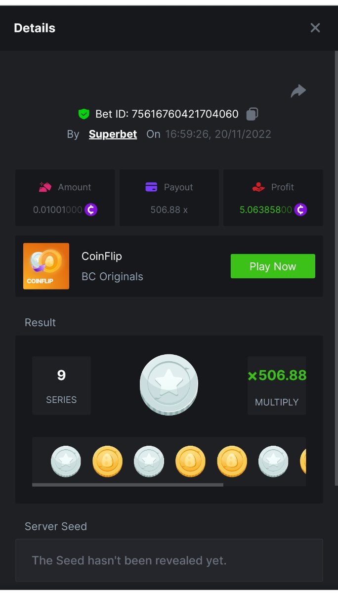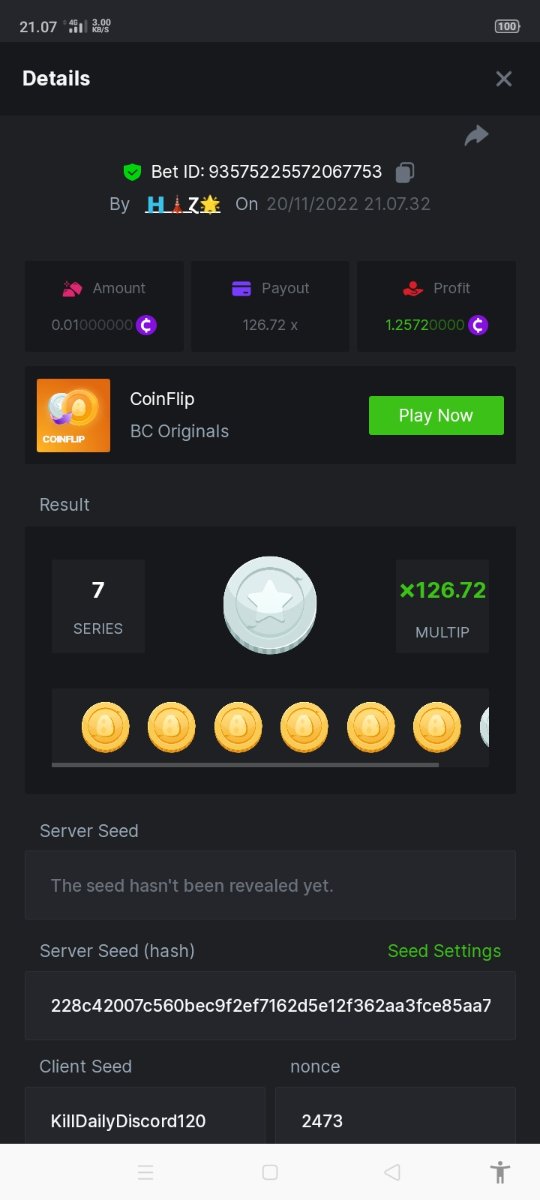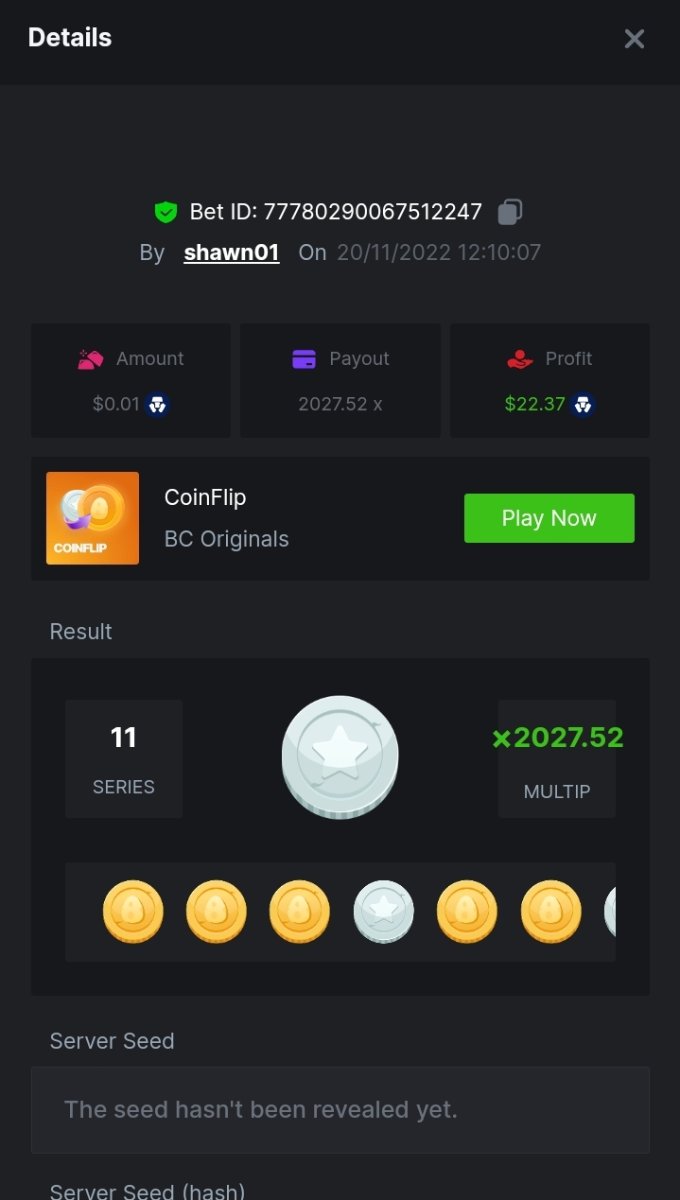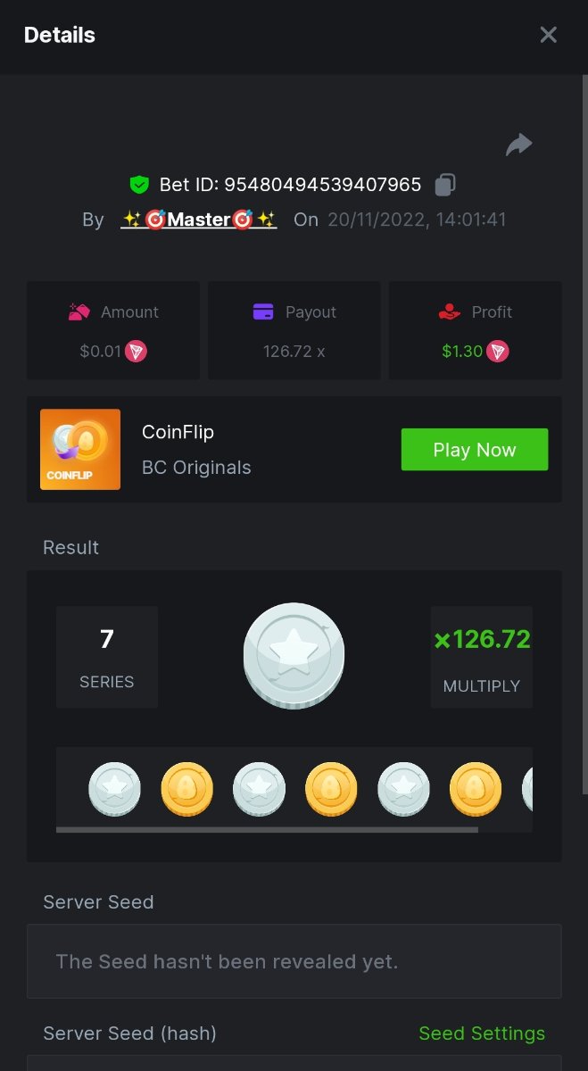 Black Tiger Posted November 20, 2022 Share Posted November 20, 2022 Read Carefully Before Start To Hunt Daily Challenges #75: Coinflip Hunt :Win the highest pay outMin Payout requirement 100xMin Level 4️Duration Starting : Now End time : 23.59 UTC Time How to Join? Make screenshot + paste your bet link + UID or Profile link Mini bet amount - 0.01$ Any coin allowedReward Prizes 1st Place....... $7 BCD2nd Place..... $5 BCD3rd Place...... $4 BCD 🎖4th Place......$3 BCD5th - 10th Place......$1 BCD 🏵 Winners will be announcing next day after Roll Point 2 Link to comment Share on other sites More sharing options...