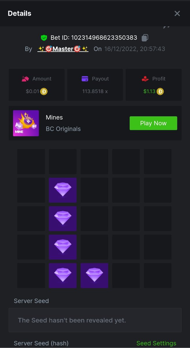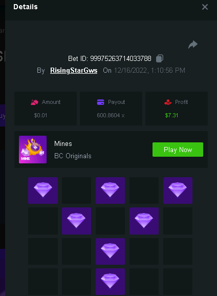 Victor777Binev Posted December 16, 2022 Share Posted December 16, 2022 can u give sample mines @Black Tiger about how many bomb and Diamond on every single 1bomb until 24 bomb ? thx Link to comment Share on other sites More sharing options...