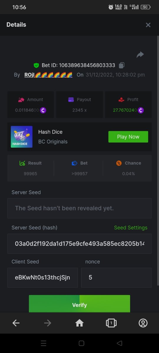 Black Tiger Posted December 31, 2022 Share Posted December 31, 2022 Read Carefully Before Start To Hunt Daily Challenges #116: Hash DiceHunt :Win the highest pay outMin Payout requirement 100xMin Level 4️Duration Starting : Now End time : 23.59 UTC Time How to Join? Make screenshot + paste your bet link + UID or Profile link Mini bet amount - 0.01$ Any coin allowedReward Prizes 1st Place....... $7 BCD2nd Place..... $5 BCD3rd Place...... $4 BCD 🎖4th Place......$3 BCD5th - 10th Place......$1 BCD 🏵 Winners will be announcing next day after Roll Point Link to comment Share on other sites More sharing options...