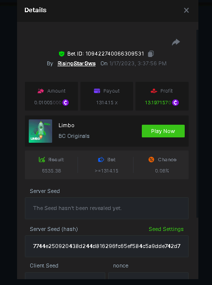 deenniiss_game Posted January 17, 2023 Share Posted January 17, 2023 21 hours ago, Black Tiger said: Read Carefully Before Start To Hunt Daily Challenges #133 : LIMBOHunt :Win the highest pay outMin Payout requirement 100xMin Level 4️Duration Starting : Now End time : 23.59 UTC Time How to Join? Make screenshot + paste your bet link + UID or Profile link Mini bet amount- 0.01$ Any coin allowedReward Prizes 1st Place....... $7 BCD2nd Place..... $5 BCD3rd Place...... $4 BCD 🎖4th Place......$3 BCD5th - 10th Place......$1 BCD 🏵 Winners will be announcing next day after Roll Point https://prnt.sc/mIysuRI2B18G https://bc.game/#/sd/111LRY93VIYEC3 User Id: 1255531 deenniiss Link to comment Share on other sites More sharing options...