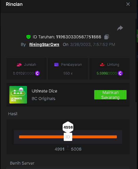 Maksypro Posted March 29, 2023 Author Share Posted March 29, 2023 List of winner dailychallenges #188 bassabar - 1650 x XTOHb - 1414.2857 x jhonncueva - 900 x Alejandrus31 - 707.1428 x RisingStarGws - 550 x ⚠Please,don't forget UID for your post How to claim your reward for: Double Flashdrop | Daily Challenges? These steps help us faster to verify. Step by step how to claim : DM/PM Me (forum) And wait for accepting.( If you accepted and didn't answer for 5 min you will be removed and have to join again) Share the screenshot Share the win bet link (daily challenges) Share UID or Profile linkWait for a response to get the winning code (1-12 hours) please be patient Link to comment Share on other sites More sharing options...