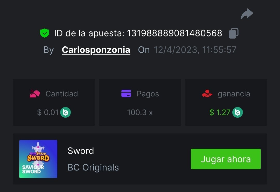 Maksypro Posted April 12, 2023 Share Posted April 12, 2023 Read Carefully Before Start To Hunt Daily Challenges #203 SWORD Hunt : Win the highest multiplier Min Multiplier requirement 70x Min Level 4 ๏ธDuration Starting : Now End time : 23.59 UTC Time How to Join? Make screenshot + paste your bet link + UID or Profile link Any coin, with min bet 0.01 USD is allowed (jb/bb/bcl not allowed) Reward Prizes 1st Place.....$7 BCD 2nd Place.....$5 BCD 3rd Place.....$4 BCD 4th Place.....$3 BCD 5th Place.....$2 BCD ๐ต Winners will be announcing next day after Roll Point! Link to comment Share on other sites More sharing options...