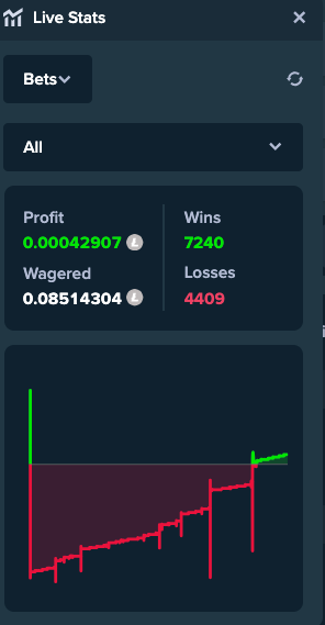 Penthesilea Posted January 30, 2024 Author Share Posted January 30, 2024 1 hour ago, MrFrjx said: Hi Astartes! I've been playing with your script starting from yesterday and it's actually very interesting. I want to thank you again and also share with you some data about my 2 losses that broked the strategy in order to figure out if is there any chance to even improve your work. Both loss occurred at the 8th lose streak due to insufficient balance. The first time I started play with 100€ and according to your suggestion to keep the bet at 0.1 with such a start amount, I was even more cautios betting 0.06 When I got to 8 losses in a row, the following was the result: I ended up running out of money to support the 9th bet that required 155€ Due to the skip of the 155€ bet, I still had some money on my account and I started again the strategy. This time I decided to be more conservative, betting 0.015. The system worked good and I got to somewhere around 142€ when another 8 losses in a row occurred. The 9th bet required 188€ that was out of my balance, so the script stopped again. I still found my balance around 128, so I could restart the strategy again, and it's currently still running, getting to 192€. Now I have a couple of reflections on that: - If I had enough amount to bet for the 9th spin, and it would end up in another loss, I would have lost all my bankroll. This should be avoided, for instance by checking that if the last bet would completely drain the bankroll, the script should stop before do that. This actually saved my wallet allowing me to restart, even with a loss to recover from (and that happened by restarting the strategy and make it do the job). - Second: that's just my curiosity. How many losses in a row have you observed in playing Hash Dice? I see your script being programmed to deal with even 17 losses in a row. If this is something that can be expected, then the basebet should be very little if you start with 100€. Based on my counts 0.01 would be even too risky... what's your opinion on that? That's it. I keep experiment with the script and let you know how it is going. Thank you again for sharing your idea! By the way for the second loss serie I have saved the log. Is attached below if needed. Total wins: 3634 Total Losses: 2303 Longest win streak: 14 Longest lose streak: 7 Placed bet for the amount of 0.015000000000000001 We won a net profit of: 0.00914700 Recalculating base bet to 0.01500000 which is 150 percent of 188.81622520 We won, so next bet will be 0.01500000 USDT total wagers: 375.41654386 Net Profit: 33.25170578 Current win streak: 4 Current Lose streak: 0 Total wins: 3635 Total Losses: 2303 Longest win streak: 14 Longest lose streak: 7 Placed bet for the amount of 0.015000000000000001 We lost a net amount of: 0.01500000 We lost, so next bet will be 0.01500000 USDT total wagers: 375.43154386 Net Profit: 33.23670578 Current win streak: 0 Current Lose streak: 1 Total wins: 3635 Total Losses: 2304 Longest win streak: 14 Longest lose streak: 7 Placed bet for the amount of 0.015000000000000001 We lost a net amount of: 0.01500000 Streak >2 losses, increase bet by 100%. We lost, so next bet will be 0.03750000 USDT total wagers: 375.44654386 Net Profit: 33.22170578 Current win streak: 0 Current Lose streak: 2 Total wins: 3635 Total Losses: 2305 Longest win streak: 14 Longest lose streak: 7 Placed bet for the amount of 0.037500000000000006 We lost a net amount of: 0.03750000 Streak >2 losses, increase bet by 100%. Every streak 3 losses, decrease payout by 1.75%. We lost, so next bet will be 0.10781250 USDT total wagers: 375.48404386 Net Profit: 33.18420578 Current win streak: 0 Current Lose streak: 3 Total wins: 3635 Total Losses: 2306 Longest win streak: 14 Longest lose streak: 7 Placed bet for the amount of 0.1078125 We lost a net amount of: 0.10781250 Streak >2 losses, increase bet by 100%. First streak 4 losses, increase bet by 55%. Every streak 5 losses, decrease payout by 3%. We lost, so next bet will be 0.41777344 USDT total wagers: 375.59185636 Net Profit: 33.07639328 Current win streak: 0 Current Lose streak: 4 Total wins: 3635 Total Losses: 2307 Longest win streak: 14 Longest lose streak: 7 Placed bet for the amount of 0.4177734375 We lost a net amount of: 0.41777344 Streak >2 losses, increase bet by 100%. First streak 5 losses, increase bet by 65%. Every streak 5 losses, decrease payout by 2.5%. We lost, so next bet will be 1.72331543 USDT total wagers: 376.00962980 Net Profit: 32.65861984 Current win streak: 0 Current Lose streak: 5 Total wins: 3635 Total Losses: 2308 Longest win streak: 14 Longest lose streak: 7 Placed bet for the amount of 1.7233154296875 We lost a net amount of: 1.72331543 Streak >2 losses, increase bet by 100%. First streak 6 losses, increase bet by 70%. Every streak 3 losses, decrease payout by 1.75%. We lost, so next bet will be 8.42270416 USDT total wagers: 377.73294523 Net Profit: 30.93530441 Current win streak: 0 Current Lose streak: 6 Total wins: 3635 Total Losses: 2309 Longest win streak: 14 Longest lose streak: 7 Placed bet for the amount of 8.422704162597656 We lost a net amount of: 8.42270416 Streak >2 losses, increase bet by 100%. First streak 7 losses, increase bet by 85%. We lost, so next bet will be 38.95500675 USDT total wagers: 386.15564939 Net Profit: 22.51260025 Current win streak: 0 Current Lose streak: 7 Total wins: 3635 Total Losses: 2310 Longest win streak: 14 Longest lose streak: 7 Placed bet for the amount of 38.95500675201416 We lost a net amount of: 38.95500675 Streak >2 losses, increase bet by 100%. First streak 8 losses, increase bet by 90%. Every streak 5 losses, decrease payout by 3%. We lost, so next bet will be 185.03628207 USDT total wagers: 425.11065614 Net Profit: -16.44240650 Current win streak: 0 Current Lose streak: 8 Total wins: 3635 Total Losses: 2311 Longest win streak: 14 Longest lose streak: 8 Placed bet for the amount of 185.03628207206722 MessageError: Insufficient balan
