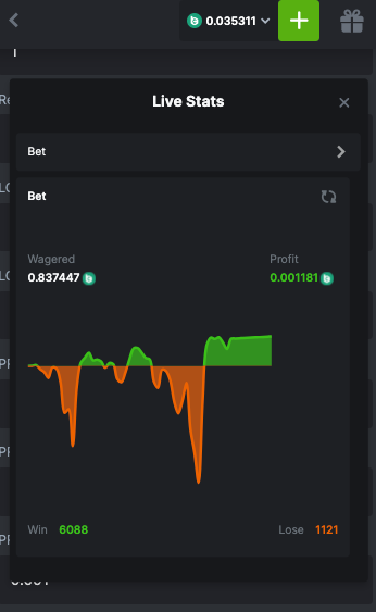 Thanks for your reply and explanation. I run the script for 20.000+ bets with minimum base bet, it seems fine until the first big drawdown and recovery... But after that, I think something went wrong.... Apparently, after a big series of losses, the script stabilized at the minimum bet, never increasing again. Here is the graph: