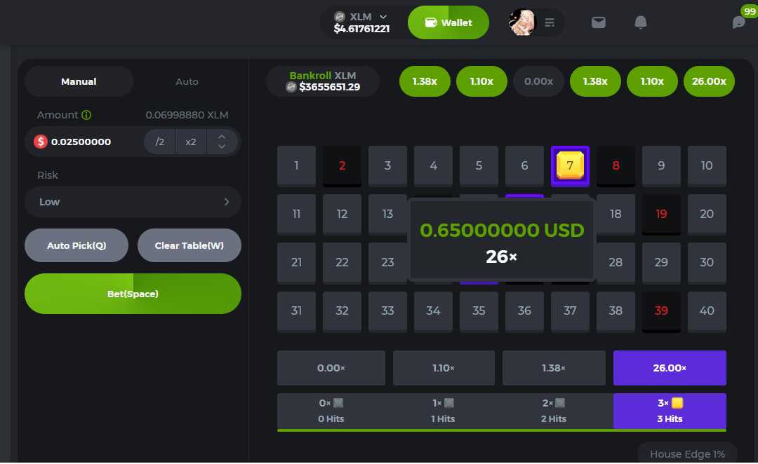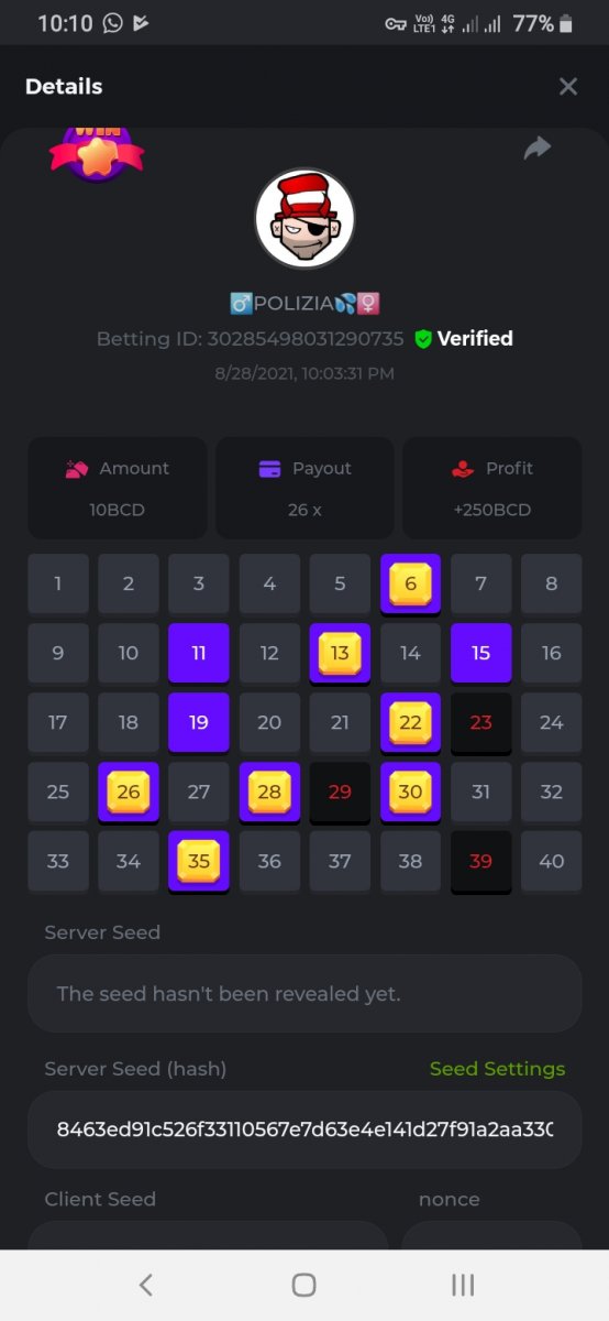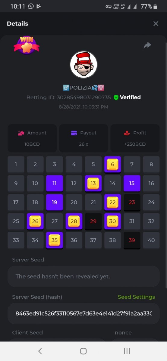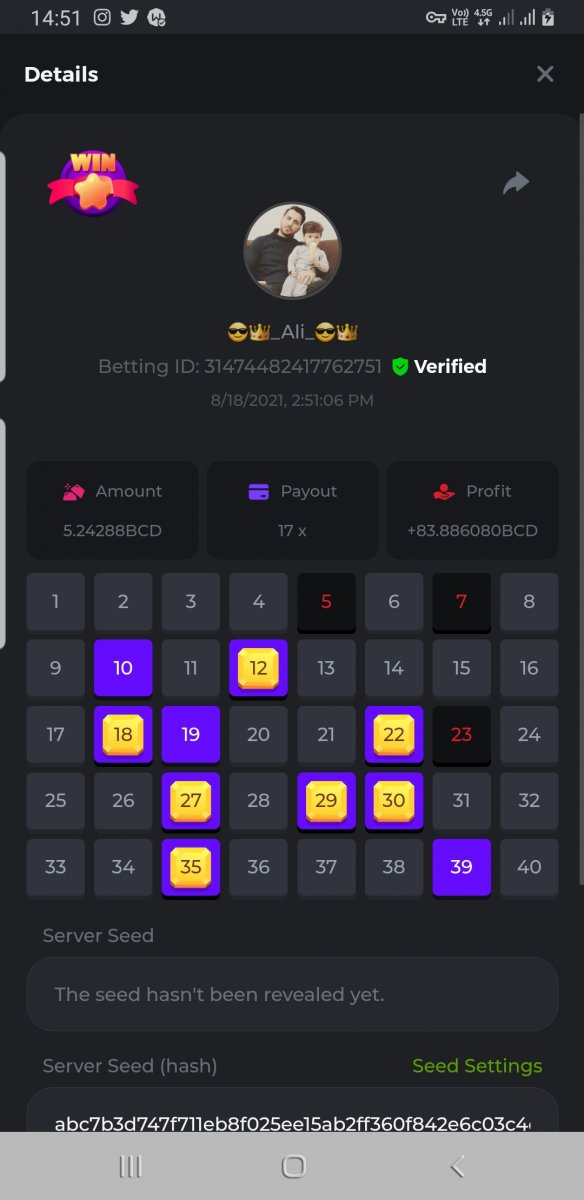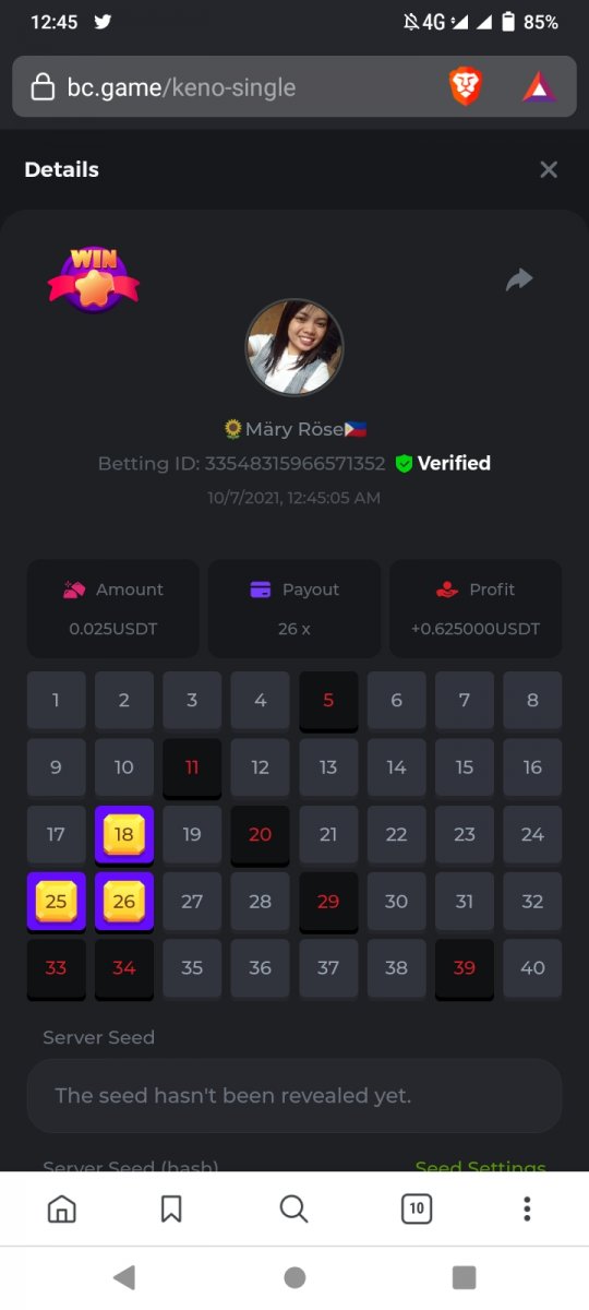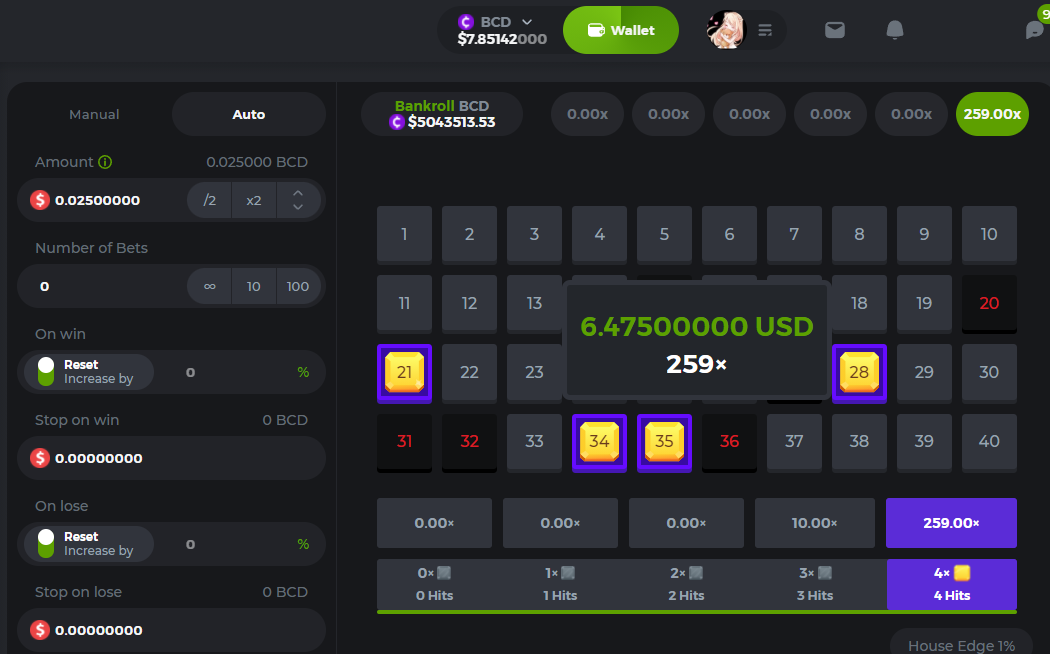 WOUNDED Posted October 4, 2021 Share Posted October 4, 2021 Welcome to keno single challeng In addition to the Top challenge,we also prepared a small challenge We hope you enjoy it Starts: 23:00 , 4 october CMT Ends: 23:00 , 8 october CMT What's the Challenge? Complete as many of the following 3 payouts on keno single(1 or all payouts) 26X _ 1 points 100X _ 3 points 259X _ 5 points The payouts must be EXACT hits - if you can't find a payout,try changing the risk level to medium or high Minimum VIP Tier Must be VIP4 or higher in order to enter this challenge. Minimum Bet Size $0.025 USD equivalent (please check the individual coin amounts below) - Bets made below this amount will not count Eligible Coins All coins are eligible (excluding JB) Available Prizes (single payout) 1points......$2 for 5 Winner 3 points......$3 for 5 Winner 5 points......$4 for 5 Winner Available Prizes (combined payout) 4 points......$6 6 points......$11 8 points......$16 9 points......$22 (For example,26X & 100X have 4 points) To enter,copy the bet ID of the bet you'd Once you've copied it,post it as a reply to this thread like so: Betting ID: 36383934979768508 In the same post,upload a screenshot of your win by clicking the game ID WITH VIEW IN USD mode ENABLED (accessible at the bottom of dropdown menu for your wallet up top.This way,we can ensure that your bet indeed met the minimum requirement at the time of placing it Please combine all of your hits together in a SINGLE post.Edit,don't create a new post Bets must be posted within 24 hours of placing bet in order to keep things fair for everyone Bets must be made during the specified time window stated above. This thread will lock automatically when the time period is over Each user is only allowed with one account Otherwise,the wrongdoer will be dealt with Failure to follow instructions will result in your submission being null and void Payouts will be made within 48 hours of challenge completion,please be patient Let's go Good luck Link to comment Share on other sites More sharing options...