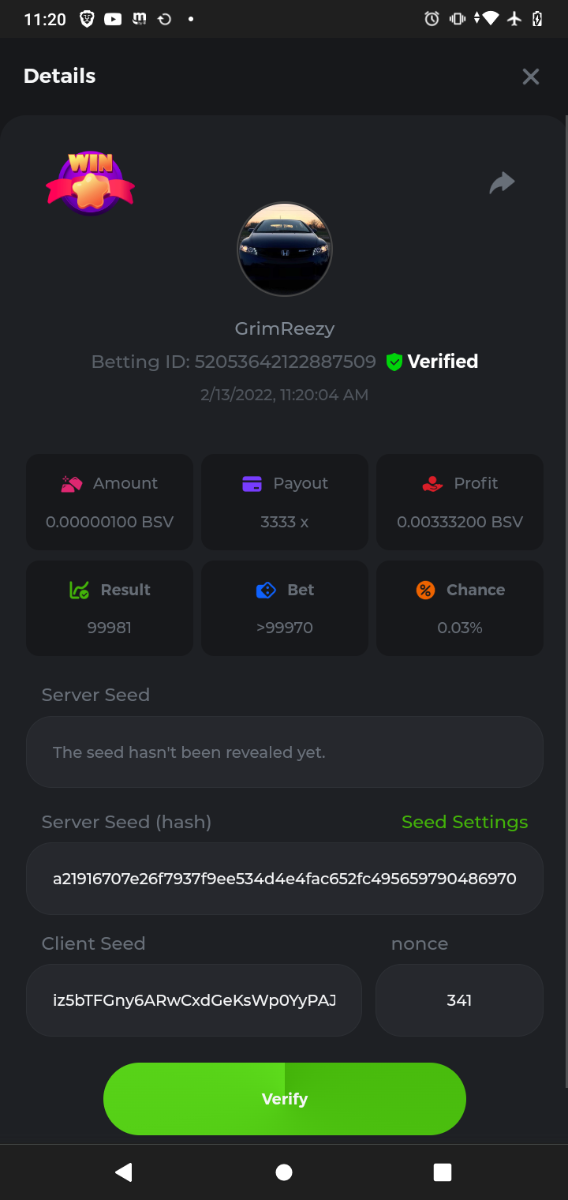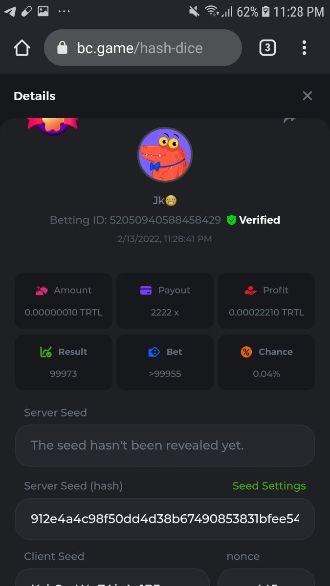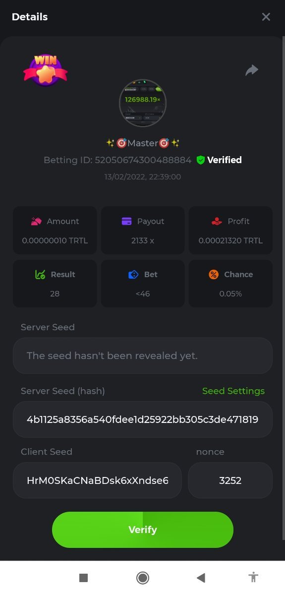 amirhaji Posted February 13, 2022 Share Posted February 13, 2022 Betting ID:11311264525454240 i got 29900x but i missed click to stop it Link to comment Share on other sites More sharing options...